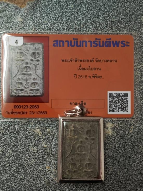 ชื่อพระเครื่อง สมเด็จพระเจ้าห้าพระองค์ เนื้อผงใบลาน [ หลวงพ่อเงิน วัดบางคลาน ] ปี16 เนื้อหาสวยจัดจ้านคราบไขเดิมๆมวลสารเพียบ หาตัวจริงยากแล้ว มาพร้อมบัตรรับรองจากเว็ป G-pra พระสวยพร้อมใส่ตลับแสตนเลสอย่างดี