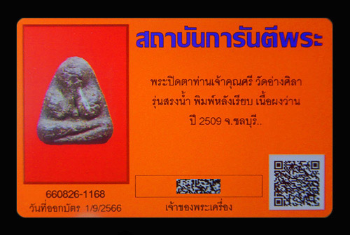 พิมพ์หลังเรียบ เนื้อผงว่าน ปี 2509 จ.ชลบุรี