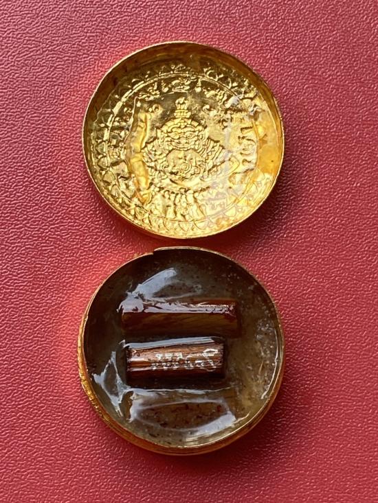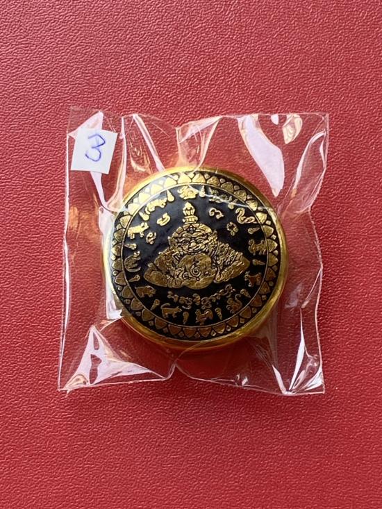 เคาะเดียวแดง สีผึ้งพระราหู รุ่น มงคลจักรวาล เนื้อ โลหะชุบทองลงยาสีดำขอบสีดำ ขนาด 3.2ซม |
