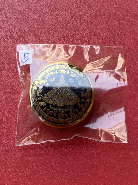 เคาะเดียวแดง สีผึ้งพระราหู รุ่น มงคลจักรวาล เนื้อ โลหะชุบทองลงยาสีดำขอบสีดำ ขนาด 3.2ซม |