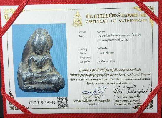 พระวัดตะไกร พิมพ์หน้ามงคลกลาง เนื้อชินเงิน ประมาณพุทธศตวรรษที่ 19-20 กรุวัดตะไกร พระนครศรีอยุธยา