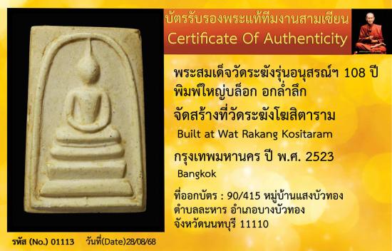 ชื่อพระเครื่อง 108ปี บล๊อกอกล่ำ ตำหนิติดชัดเจนสวย พร้อมบัตรรับรองครับ