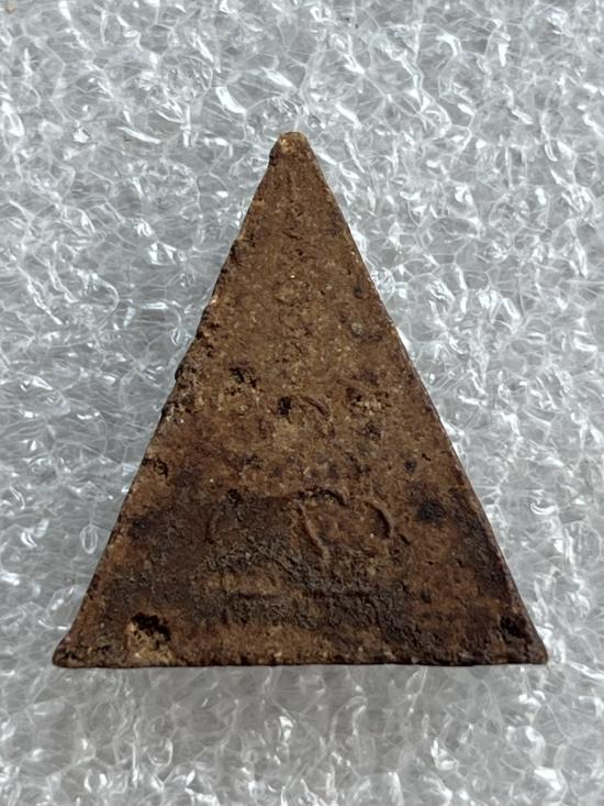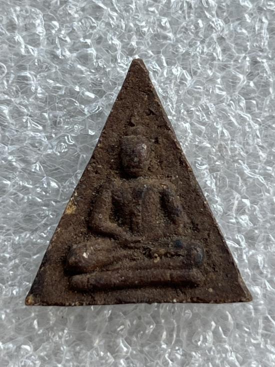 พระพุทธ เนื้อผงสามเหลี่ยม หลังยันต์ ไม่ทราบที่