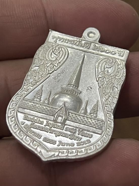 เหรียญเนื้อเงิน พุทธชยันตี 2600 ปี การตรัสรู้ขององค์สัมมาสัมพุทธเจ้า พระพุทธสิหิงค์ หลังพระบรมธาตุเจดีย์ นครศรีธรรมราช