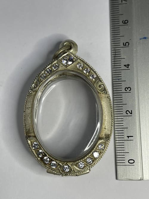 ตลับเงินมือสองฝังพลอยรูปไข่ ขนาดหน้าจอด้านใน 2.5*3.3 ซม. สภาพสมบูรณ์