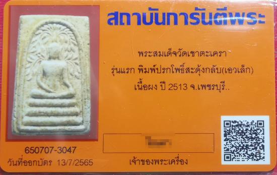 สมเด็จสดุ้งกลับ ลพ.วัดเขาตะเครา พิมพ์เอวเล็ก สองขอบนิยม รุ่นแรก ปี2513 จ.เพชรบุรี พร้อมบัตรรับรอง