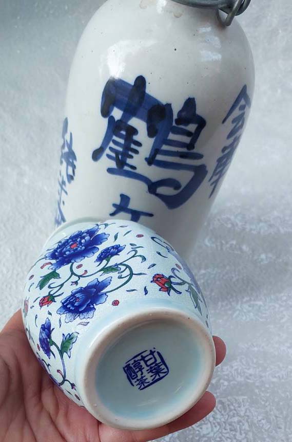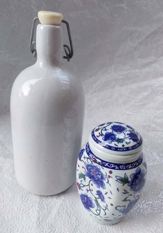 โถกับขวด กระเบื้องวินเทจมีฝาปิด