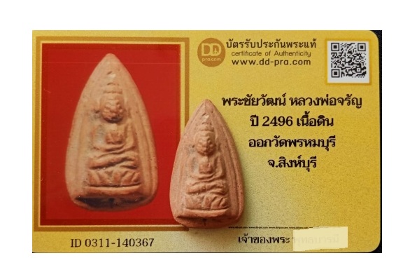 พระชัยวัฒน์ ลพ.จรัญ ปี 2496 ออกวัดพรหมบุรี จ.สิงห์บุรี ดินเก่า + บัตรรับรอง