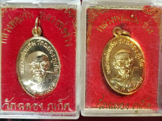 เหรียญกะไหล่ทอง หลวงพ่อแช่ม หลังหลวงพ่อช่วง ย้อนยุคปี ๒๔๙๗ วัดฉลอง จ.ภูเก็ต 2 เหรียญพร้อมกล่อง