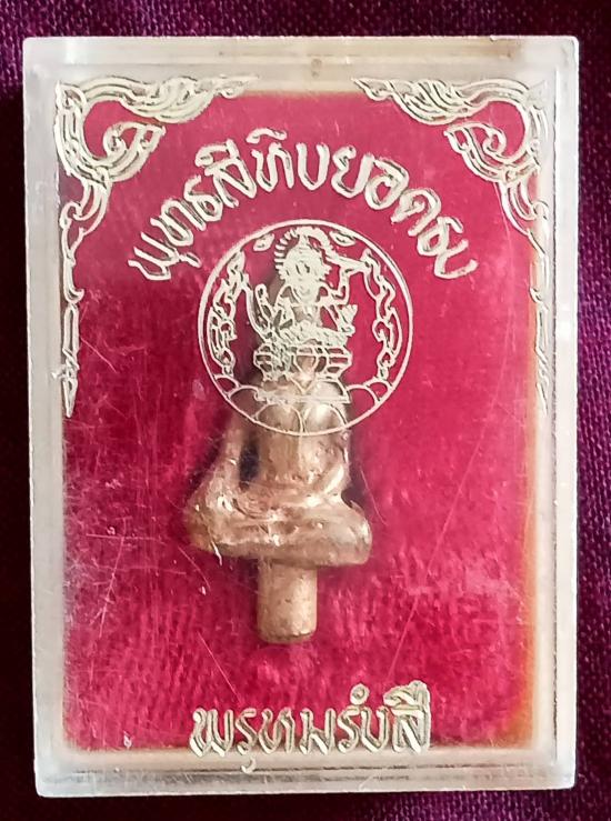 พระพุทธสิหิงยอดธง วัดพรหมรังษี สร้างขึ้นในปี 2512 เนื้อกะไหล่ทองเก่าสวยมาก สภาพเก่าเก็บไม่ผ่านการใช้ มาพร้อมกล่องเดิม ๆ จากวัด วัดพรหมรังษีเป็นวัดที่สมเด็จพระพุฒธาจารย์โตท่านเคยมาพำนัก การสร้างพระพุทธสิหิงยอดธงในครั้งนั้นเป็นพิธีใหญ่เกจิในยุคนั้นมาร่วมกันปลุกเสกมากมายและได้ใช้รูปแบบพระพุทธสิหิงซึ่งเป็นพระพุทธรุปศักดิ์สิทธ์มาเป็นพระยอดธงพุทธคุณเด่นทางคุ้มครอง มหาอำนาจเหมาะสำหรับผู้นำ นับแต่ปีที่สร้างจนถึงปัจจุบันก็ห้าสิบกว่าปีแล้ว สภาพสวยตามรูป ส่งฟรีทั่วประเทศ รับประกันตามกฎครับ