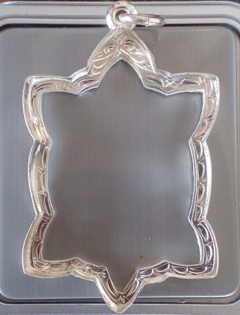 <<กรอบเงินแท้95%>> มือหนึ่ง ยกซุ้มหัวสิงห์ย้อย ใส่เหรียญเต่าปลดหนี้หลวงปู่หลิว ปี36 งานมือช่างทองแกะลายลึกๆสวๆย หนัก9.18g