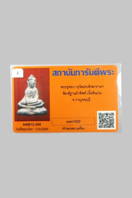 พระอู่ทอง ฐานผ้าทิพย์ กรุเทวาสังฆาราม (วัดเหนือ) เนื้อชินเงิน พร้อมบัตรรับรอง