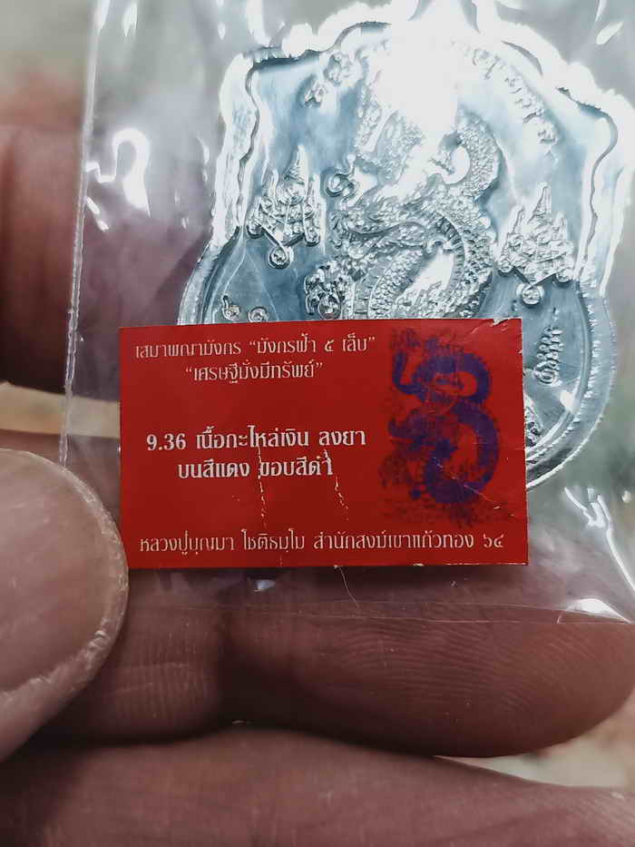 วัดใจ 100 เหรียญเสมาพญามังกร เศรษฐีมั่งมัทรัพย์ หลวงปู่บุญมา สำนักสงฆ์เขาแก้วทอง จ.ปราจีนบุรี 2564 กะไหล่เงิน ลงยา หมายเลข 61 กล่องเดิม