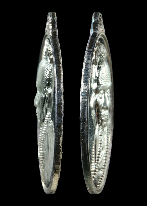 เหรียญหันข้างครึ่งองค์ รุ่น สมปรารถนา ( รุ่นแรก ) หลวงปู่เขียน ปุญญกาโม สำนักสงฆ์ป่าช้าบ้านโพนสิม จ.อุบลราชธานี พ.ศ.2559 เนื้อเงิน ตอกโค๊ต ตอกเลข สภาพเหรียญสวยพร้อมกล่อง