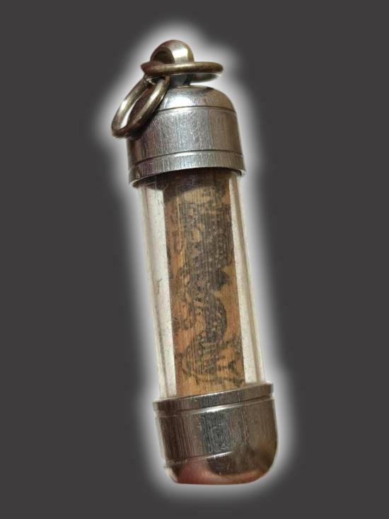 A6730.เครื่องรางไม้ว่านมงคล ไม่ทราบที่ เลี่ยมพร้อมใช้ ความยาวรวมเลี่ยม 1.8 นิ้ว เคาะเดียวเเดง