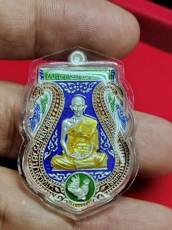 เหรียญหลวงพ่อรวย วัดตะโก อยุธยา รุ่นไตรมาส รวยทรัพย์แสนล้าน เนื้อเงินลง ลงยาน้ำเงิน