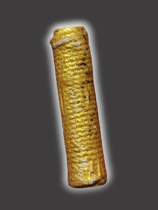A6732.เครื่องรางตะกรุดพันเชือกทาทอง ไม่ทราบสำนัก ยาว1นิ้ว เคาะเดียวเเดง