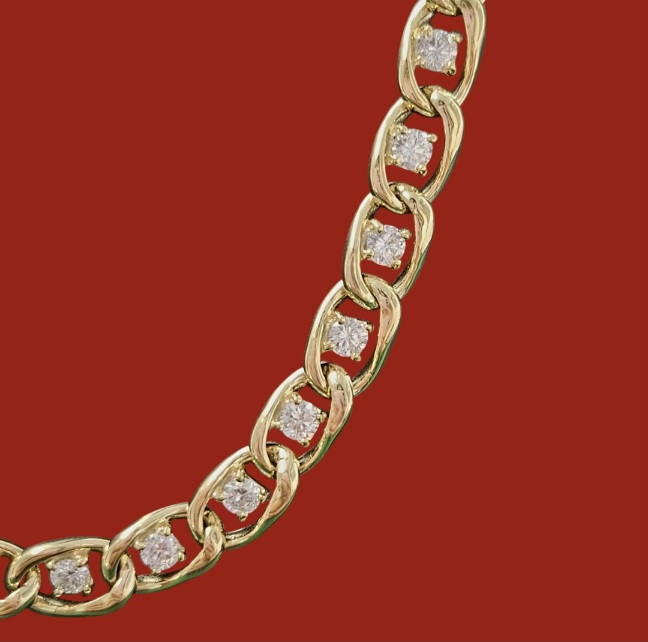 สร้อยทอง 9k ฝั่งเพชร แลป ไซร์ 10 ตัง 66 เม็ด เพชร น้ำหนัก 6 กระรัต 60 เพชรน้ำสวย