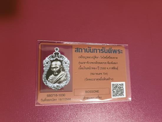เคาะเดียว หลวงปู่มหาศิลา สิริจันโท เหรีญเสมา ไหว้ครู 68 รุ่นมหาจักรพรรดิยอดรวย รายการที่12 เนื้อเงินหน้ากากทองคำ เลข 794 พร้อมใบเซอร์
