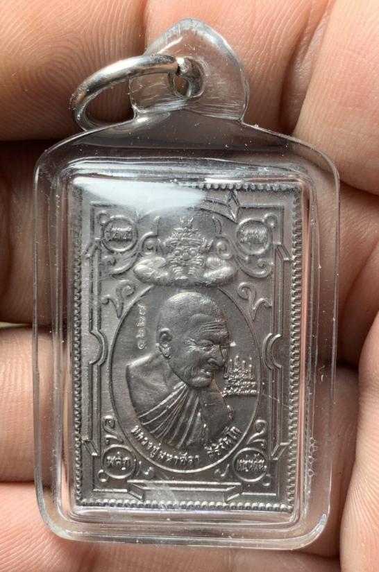เหรียญแสตมป์ 2 หน้า ที่ระลึก สุริยัน-จันทรา(พลิกแผ่นดิน) เนื้อตะกั่ว หลวงปู่มหาศิลา สิริจันโทและพระอาจารย์สุริยันต์ โฆสปัญโญ