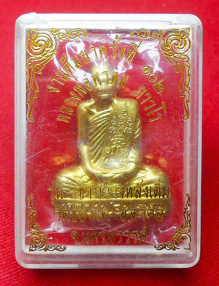 รูปหล่อเข่ากว้างหลังเต็มหลวงพ่อพรหม วัดช่องแค เนื้อทองเหลือง รุ่นงานต้มยาครั้งที่ 102 ปี พศ 2555-2556