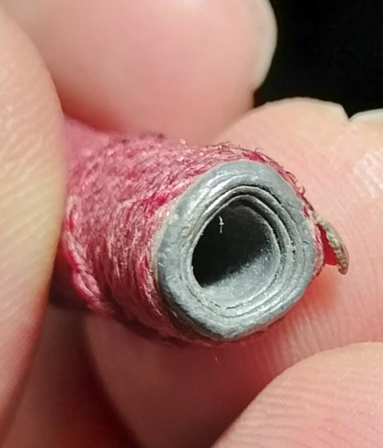 ตะกรุดตะกั่วเก่าไม่ทราบที่ ส่องดูข้างในเห็นรอยจาร สวยเดิม เคาะเดียวแดง 100