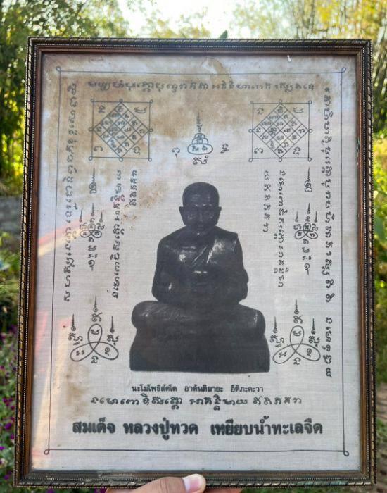 ผ้ายันต์หลวงปู่ทวดแบบโบราณ ประมาณ พ.ศ.2533 วัดทรายขาว อำเภอโ คกโพธิ์ จังหวัดปัตตานี ขนาด 1215 กรอบอัดกระจกอย่างดี |