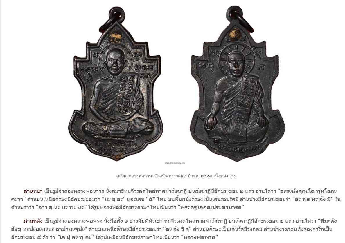 เหรียญหลวงพ่อนารถ วัดศรีโลหะราษฎร์บำรุง รุ่น 2 ปี2511 เนื้อทองแดงรมดำ พิเศษมีบรอนซ์ทองสวย