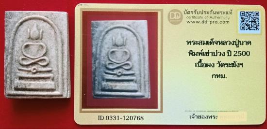 พระสมเด็จ หลวงปู่นาค พิมพ์เข่าบ่วง ฝังตะกรุด สวย เดิม ปี 2500 เนื้อผง วัดระฆังฯ + บัตรรับรอง