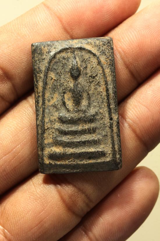 เอกลักษณ์: เนื้อพระจะมีความแห้ง แกร่ง แต่ดูนุ่มตา (เก่าตามธรรมชาติอายุ 100 กว่าปี) หากส่องดูจะเห็นมวลสารจุดขาวหรือเกล็ดผงพุทธคุณกระจายอยู่