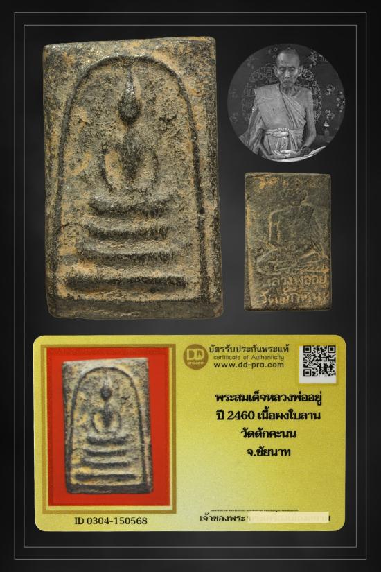 พระสมเด็จหลวงรูปเหมือน หลวงพ่ออยู่ ปี 2460 เนื้อผงใบลาน วัดดักคะนน จ.ชัยนาท + บัตรรับประกันพระแท้