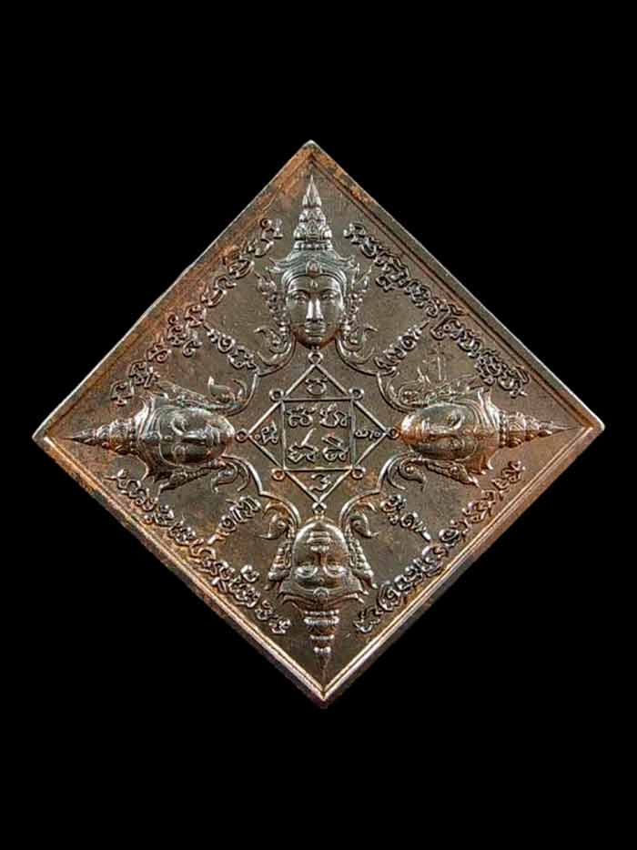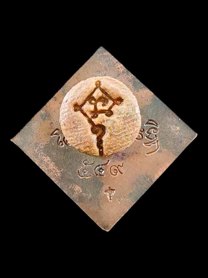 เนื้อผงที่ติดด้านหลังคือผงสมเด็จวัดระฆัง วัดบางขุนพรหม วัดเกศไชโย ผงพระเบญจภาคี และผงมวลสารอีกมากมาย