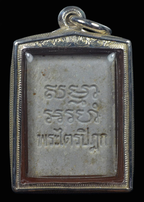 พระของขวัญ วัดปากน้ำ รุ่น 6 (พระไตรปิฎก) เนื้อผง ปี 2532 จ.กรุงเทพฯ เลี่ยมกันน้า กรอบเงิน
