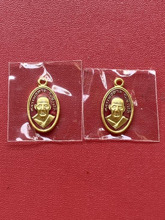 เคาะเดียวแดง เม็ดแตง 2องค์หลวงปู่ทวด รุ่น102ปีอาจารย์ทิม เนื้อชุบทองลงยาสีแดง |
