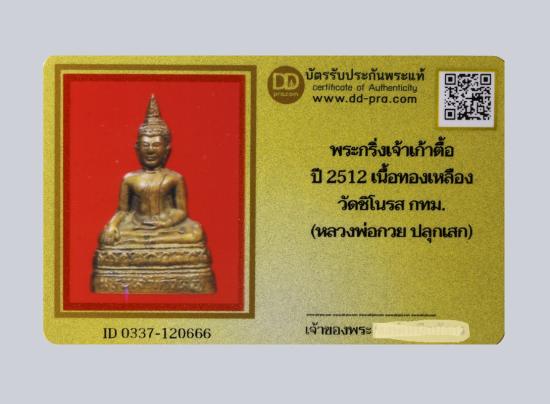 พระกริ่งเจ้าเก้าตื้อ ปี 2512 เนื้อทองเหลือง วัดชิโนรส กทม. (หลวงพ่อกวย ปลุกเสก) น่าบูชามากๆ+บัตร
