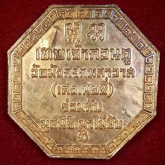 เหรียญ แปดเหลี่ยมเจ้าพ่อกวนอู วัดมังกรกมลาวาส(วัดเล่งเนยยี่) ร่วมกับ มูลนิธิเมาไม่ขับ.....กะไหล่ทอง |