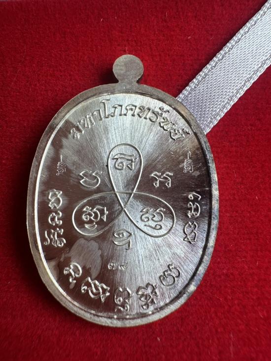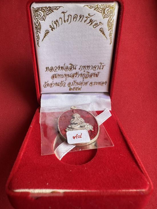 เนื้อเงิน...เหรียญมหาโภคทรัพย์ หลวงพ่อสิน วัดละหารใหญ่ จ.ระยอง ปี 2559 พิมพระปิดตา เนื้อเงินลงยาสีแดง เลข 78 พร้อมกล่อง