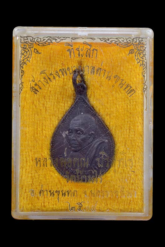 ++วัตถุประสงค์ : ด้วยโรงพยาบาลด่านขุนทด เป็นสถานที่บำบัดรักษาความเจ็บป่วยของประชาชน โดยทั่วไป ในปัจจุบันมีผู้มาใช้บริการเพิ่มมากขึ้น ตึกคนไข้และอุปกรณ์การแพทย์ที่มีอยู่ไม่เพียงพอ ที่จะรับบริการผู้เจ็บป่วยได้อย่างทั่วถึง ด้วยความเมตตาสงสารและห่วงใยต่อชีวิตของผู้เจ็บป่วย หลวงพ่อคูณ จึงมีความประสงค์ จะสร้างตึกอุบัติเหตุ และ จัดหาอุปกรณ์การแพทย์ มอบให้แก่ทางโรงพยาบาลด่านขุนทด เพื่อให้มีสถานที่บำบัดรักษาความเจ็บป่วยประชาชน โดยทั่วไปอย่างทั่วถึงและทันเวลา การก่อสร้างอาคารดังกล่าว จึงต้องใช้งบประมาณจำนวนมาก ทางคณะกรรมการจึงได้จัดสร้างวัตถุมงคลของ หลวงพ่อคูณ เนื้อทองคำ , เนื้อเงิน , เนื้อนวโลหะ , เนื้อทองแดง เพื่อให้ผู้มีจิตศรัทธาทั้งหลาย ร่วมสร้างตึกอุบัติเหตุ โรงพยาบาลด่านขุนทด ให้เสร็จเรียบร้อยสมบูรณ์ตามวัตถุประสงค์ต่อไป