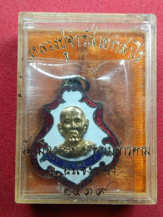 เหรียญ ลพ.จำรัส วัดเมืองกาย สายเหนียว เนื้อเงินลงยากาหลั่ยทอง หน้าแปะ ปี 2519 น้ำหนัก 9.1 กรัม สวยๆพร้อมกล่องครับ