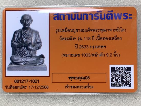 พระบูชาสมเด็จโต รุ่น 118 ปี วัดระฆัง หน้าตัก 9 นิ้ว สวยเดิมๆครับ พร้อมบัตรรับรอง เคาะเดียวครับ