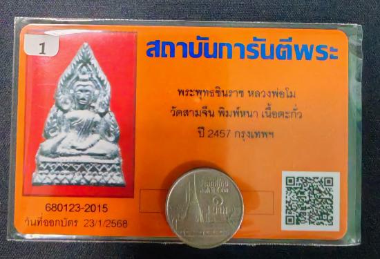 พระพุทธชินราชหลวงพ่อโมวัดสามจีนพิมพ์หนาเนื้อตะกั่วปี2457กรุงเทพ