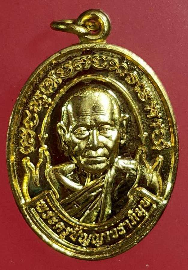 เหรียญรุ่น เลื่อนสมณศักดิ์ตาหลวงนุ้ย ภูริปญฺโญ เจ้าอาวาสวัดหน้าถ้ำเขาาพังอิฐ อ.ควนขนุน จ.พัทลุง เนื้อทองฝาบาตร