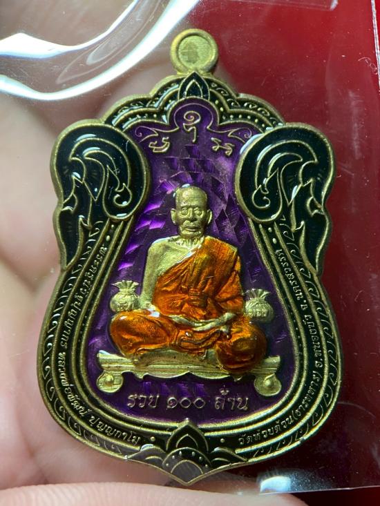 หลวงพ่อพัฒน์ วัดห้วยด้วน เศรษฐีทวีทรัพย์ 100 ล้าน เลข 799 เนื้อทองฝาบาทรลงยาม่วง พร้อมดล่องเดิม