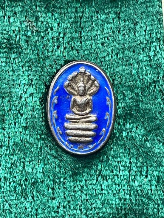 นาคปรก เนื้อเงินลงยาสีน้ำเงิน หลวงปู่คร่ำ วัดวังหว้า ระยอง ( รุ่นไตรมงคล )