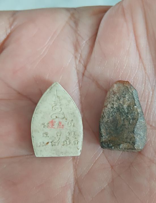 พระเจ้าสัวพิมพ์เล็กเนื้อผงปี 35 โค้ดภาษาจีนหมึกแดง ชัดเจน + พระเนื้อดินซุ้มแหลมสมาธิเพชร วัดกลางบางแก้ว