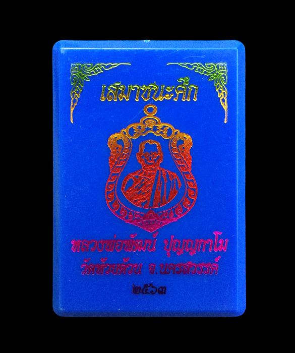 เหรียญชนะศึก หลวงพ่อพัฒน์ วัดห้วยด้วน เนื้อทองแดงหน้ากากฝาบาตร ปี2563 เลข447 พร้อมเลี่ยมพลาสติกครับ