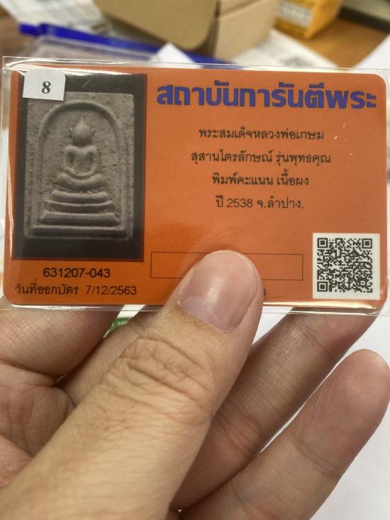 สมเด็จหลวงพ่อเกษมสุสานไตรลักษณ์รุ่นพุทธคุณพิมพ์คะแนนเนื้อผงปี 2538 จังหวัดลำปางเลี่ยมเงินสุโขทัย พร้อมบัตรการันตีพระ
