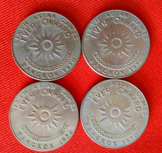 เหรียญ 1บาท ที่ระลึกเอเชี่ยนเกมส์ ครั้งที่ 6 พ.ศ. 2513จำนวน 4เหรียญ เคาะเดียวค่ะ