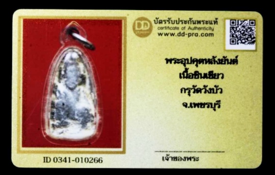 พระอุปคุตหลังยันต์ เนื้อชินเขียว กรุ วัดวังบัว พร้อมบัตรรับรอง