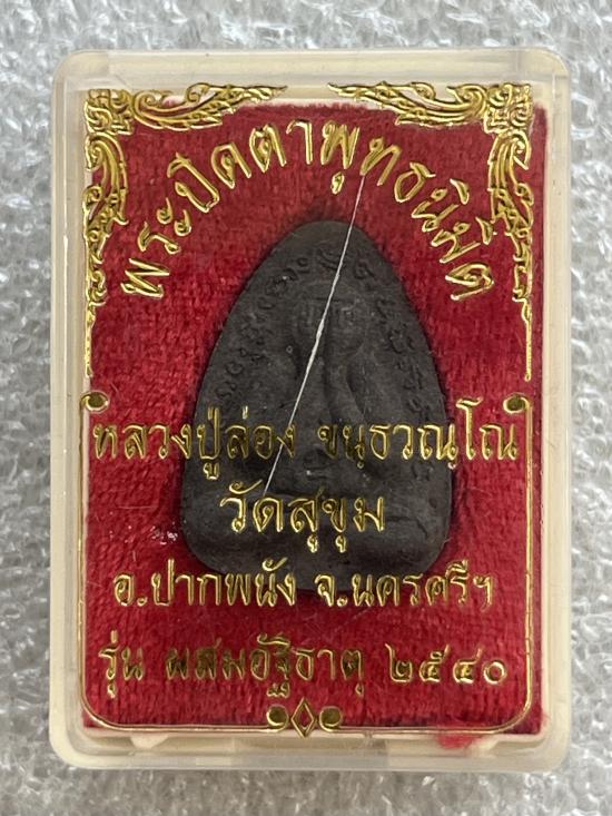 พระปิดตาพุทธนิมิต หลวงปู่ล่อง วัดสุขุม นครศรีธรรมราช รุ่น ผสมอัฐิธาตุ ปี2540 สวยกล่อง